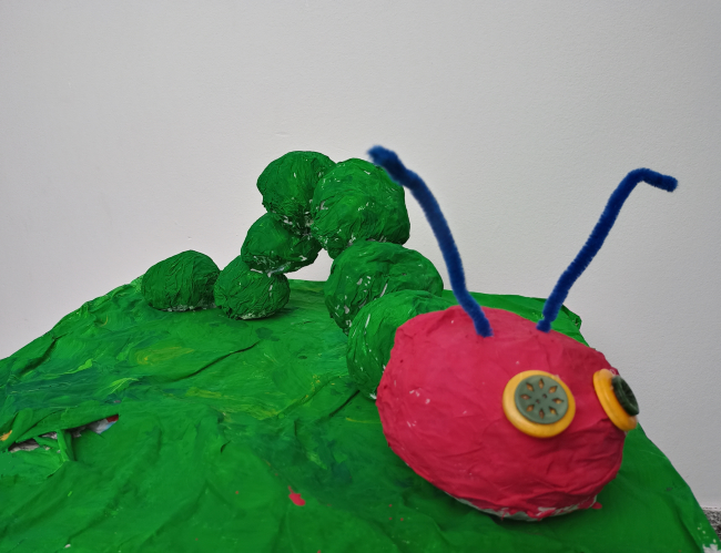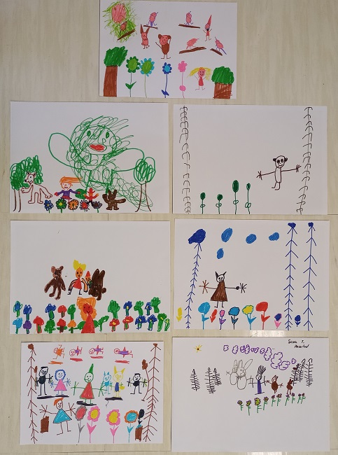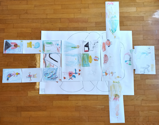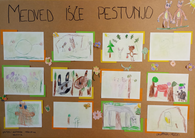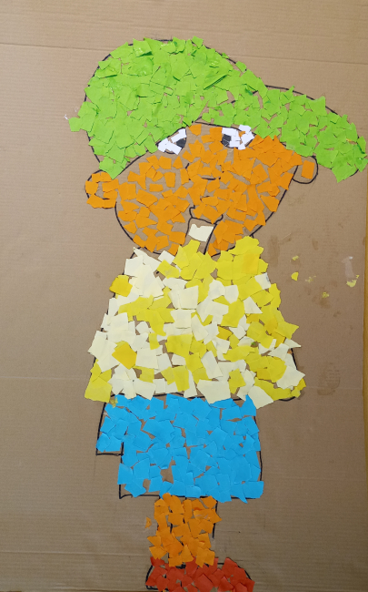 Otroci so ob pomoči mentorjev in mentoric ustvarili tudi skupinske likovne izdelke. Letošnja tema likovnega ustvarjanja je bila naj knjižni junak.