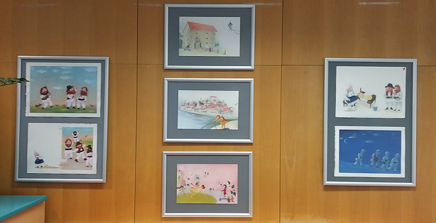 Na ogled so postavljene ilustracije Kristine Krhin iz pravljic: Povodni mož v Krki, Butorajska koza, Labodje jezero, Ker ljubezen živi, O prebrisani deklici ter ilustracije Andreje Gregorič iz pravljic Stvarjenje sveta in Ob reki, pesmi.