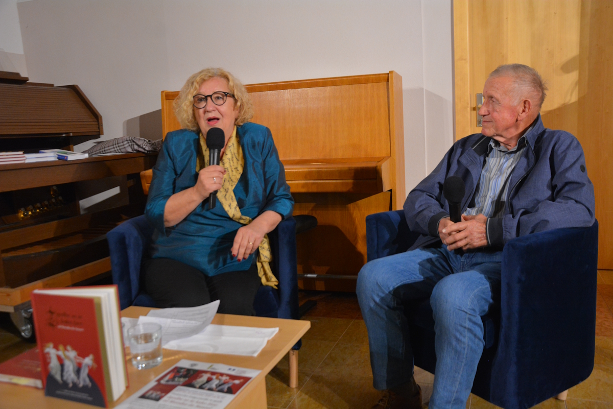 Skoraj uro in pol pogovora z avtorji zgodb je hitro minilo, saj so nas zgodbe, pravljice, spomini in anekdote pritegnile k poslušanju z velikim zanimanjem. Jože Keršič iz Motnika je povedal šaljivo povedko o motniškem polžu, ki je Motničanom ušel, ujeli pa so ga šele na Teharjih. V pogovoru je povedal, kje je slišal svoje zgodbe in zakaj jih je zapisal. Marinka Mošnik je s svojimi zgodbami tenkočutno prikazala posameznike in posameznice, ki so bili posebni ali pa so na različne načine sooblikovali skupnost. Povedala je, da je zgodbe slišala doma, kamor je v mlin ali na žago prihajalo veliko ljudi. Žal Vilka Rifla, ki je uveljavljen pisec, ni bilo z nami, v knjigi pa so objavljene njegove zgodbe iz doline Črne in Velike planine. Ivan Nograšek nam je povedal, od kod ime Kurja dolina in zgodbo o vojnem plenu v obliki zlatih konjičkov, ki se menda še dandanes nahaja nekje v Tunjicah. V knjigi so zbrane njegove zgodbe iz Tunjic in slikovito prikazujejo nekdanje čase. Z Mihom Babnikom smo se podali v med Debevčev hraste in se spomnili na rimsko svetišče v Godiču. Kot geograf je zgodbam v knjigi, ki so polne skrivnosti, dodal tudi racionalne razlage. Jožef Pavlič, novinar in avtor, je na dogodku povedal zgodbo o Juriju Bobiču – turškem novorojenčku, ki so ga po porazu turške vojske našli v njivi z bobom, in o rokovnjačih, ki so v cerkvi ukradli zaklad. V knjigi pa lahko preberemo še mnoge druge njegove zgodbe. France Stele je dogodek zaključil z zgodbo svojega starega očeta Andreja Dobnikarja – kaj je doživljal na fronti in kako se mu je godilo pozneje. S seboj je prinesel pokazat tudi prestreljene razglednice in mali molitvenik za vojake, ki ga nosil v žepu uniforme in ga je rešil pred usodnim strelom.