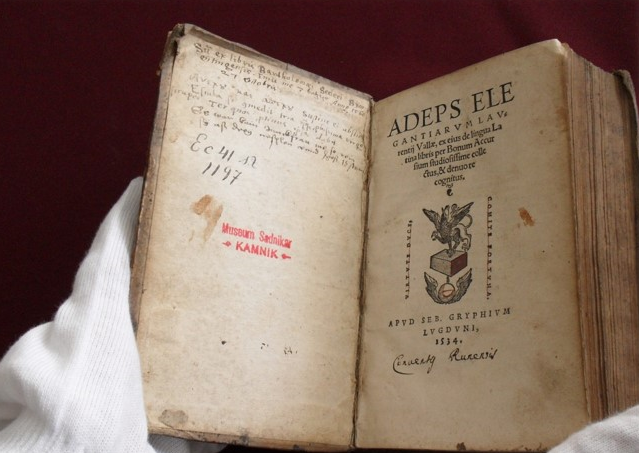 Adeps elegantiarum (Lyon, 1535) in Aphtonii sophistae progymnasmata (Lyon, 1555). Dve latinski vadnici iz 16. stoletja vezani v eno knjigo sta najstarejši tisk, ki ga hrani kamniška knjižnica. |