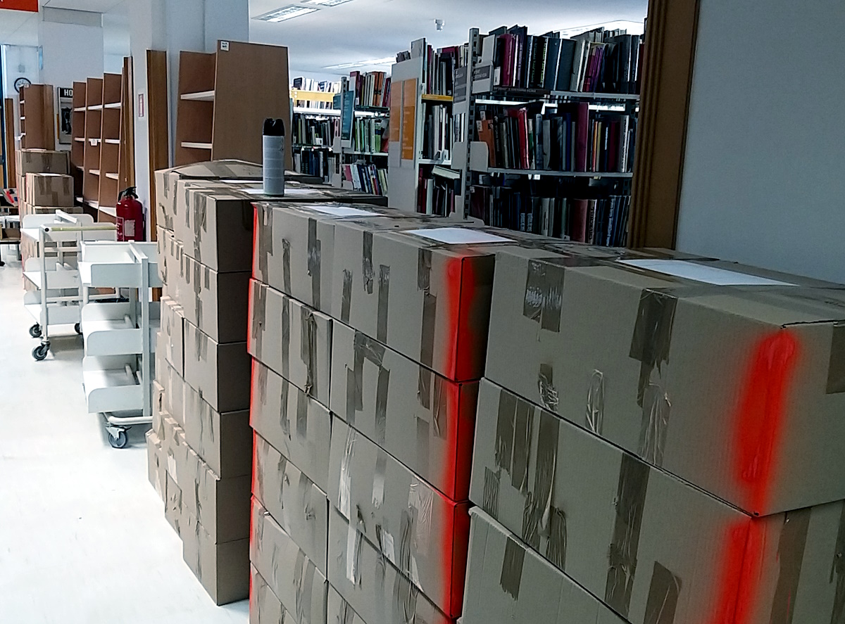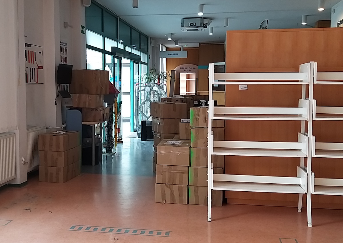 Ne selijo se le knjige. Tudi delovna mesta, knjižnični arhiv, knjižne police, omare, mize, stoli, računalniška oprema in drugo. Velik del opreme je potrebno prilagoditi začasnim lokacijam.